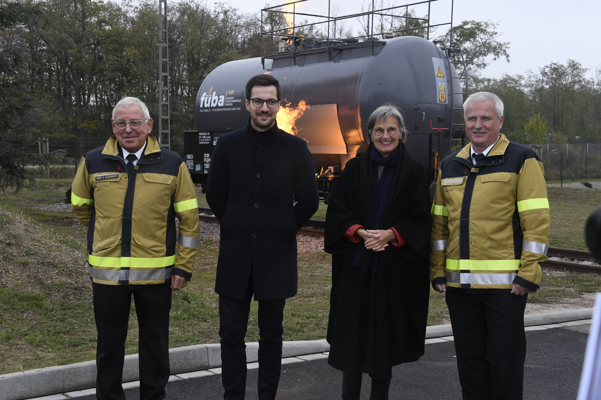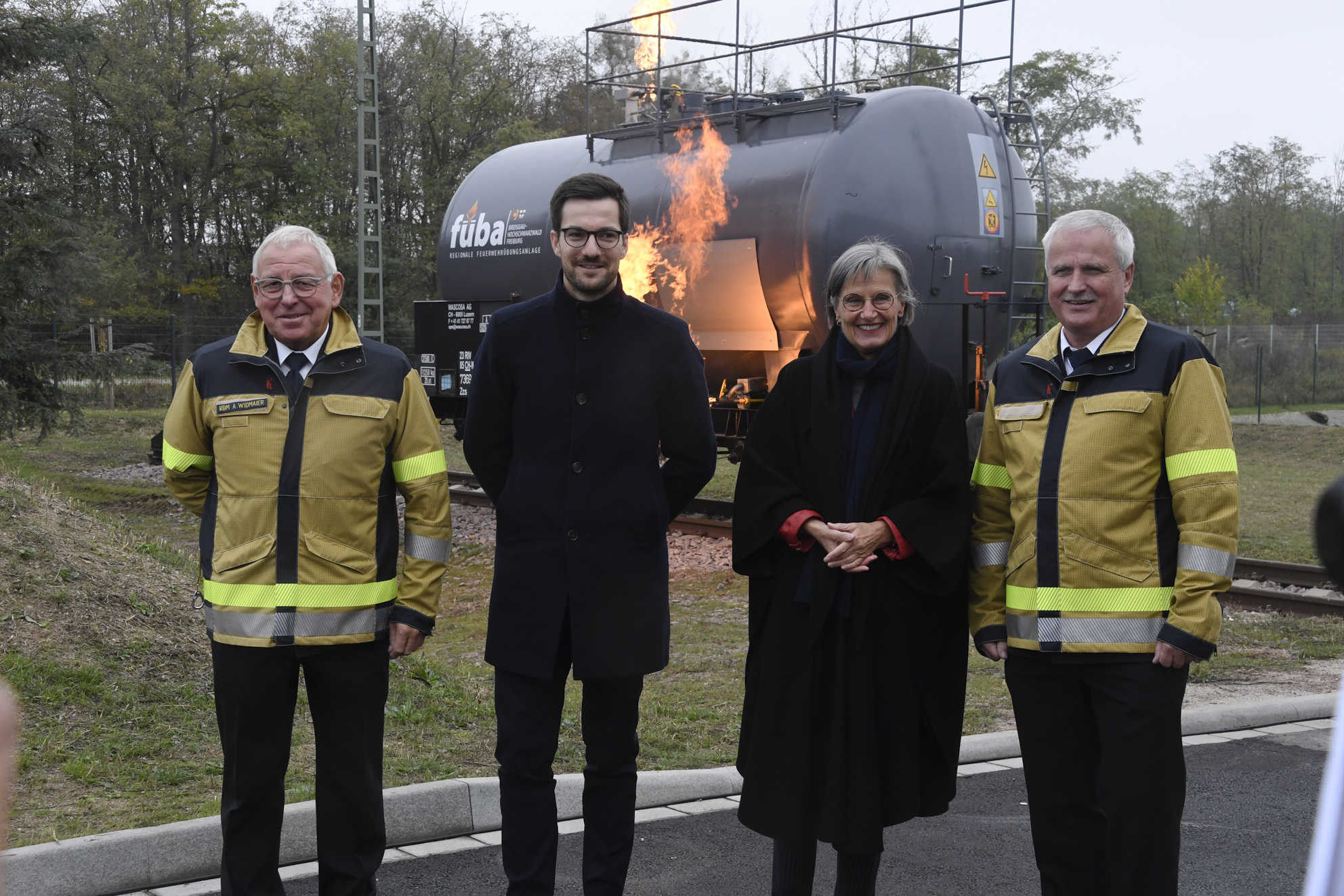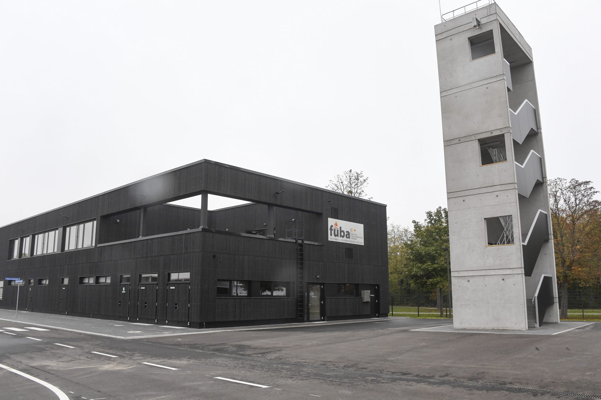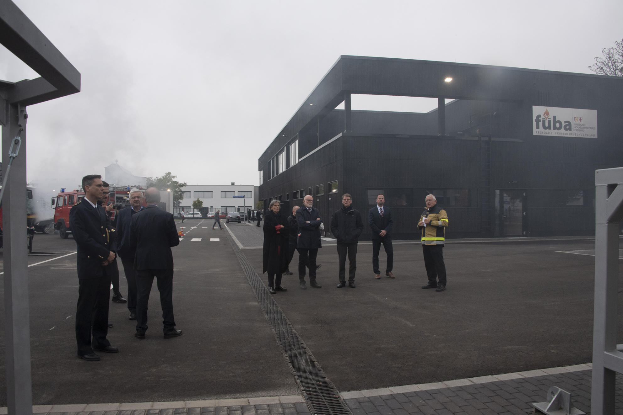Weil die Feuerwehreinsätze im Laufe der Jahre immer komplexer und anspruchsvoller geworden sind, können die Einsatzkräfte mit den neuen Ausbildungs- und Übungsmöglichkeiten der Füba, die sich auf einem Areal von etwa 11000 Quadratmetern erstreckt, optimal und nachhaltig auf ihren Einsatzdienst vorbereitet werden. Von dieser neuen Einrichtung, die vom Landkreis und von der Stadt Freiburg mit Unterstützung des Landes finanziert wurde werden etwa 10000 Feuerwehrangehörigen aus der Stadt Freiburg und aus den Landkreisen Breisgau-Hochschwarzwald, Emmendingen und Lörrach wie auch verschiedener Werkfeuerwehren profitieren. Viele technische Details machen die neue Übungsanlage der Feuerwehren so besonders. So gibt es ein Brandhaus, in dem die Heißausbildung mit rauch- und rußbildenden Holzfeuern, also das Üben von Löschangriffen und der Umgang mit dem Feuer, gelehrt wird. Flammenausbreitungen bis zum sogenannten „Flash over“, der explosionsartigen Feuerausbreitung, zu ermöglichen. Im östlichen Gebäudeteil wird das Öffnen von Türen, die Suche nach „Opfern“ in vernebelten Räumen und das Stellen von Leitern üben. Viele Elemente sind so gefertigt, dass auch der Einsatz von schwerem Rettungsgerät keine Schäden verursacht, aber die Handhabung einsatznah ermöglicht. Im Freigelände gibt es einen speziell präparierten Bahnkesselwagen mit Gleisanlage wie auch eine Industrieanlage, an denen Gefahrguteinsätze wie Havarien wie bei echten Einsätzen nachgebildet werde können. Eine Schaumübungsanlage, eine weitere Anlage für das Retten und Sichern von „Opfern“ aus Höhen und Tiefen beispielsweise bei Baustellenunfällen gehören zu den Stationen. Auch das Abstürzen von verunfallten Fahrzeugen lässt sich simulieren wie auch die Rettung aus einem Lastwagen unter ganz unterschiedlichen Bedingungen etwa nach Brand oder Unfall. Das Übungsfahrzeug ist so präpariert, dass mit Rettungsschere und Spreizer immer wieder gearbeitet werden kann. Im Hauptgebäude findet die sogenannte Schwarzweiß-Trennung statt. So werden Feuerwehrleute nach der Übung im Brandhaus mit ihrer dekontaminierte Einsatzkleidung eingeschleust, dort können sie sich duschen und umziehen, um die Rauchkontamination nicht in die Räume zu verschleppen. Während der Übung gibt es einen autark gelegener Containerunterrichtsraum. In dem mit Holzfassade verkleidete Hauptgebäude befindet sich die neue Atemschutzgeräteträgerübungsanlage, die eine computergestützte Überwachung erlaubt. Auch dort gibt es viele Details wie präparierte Gas- und Stromanschlüsse, wie die bei Bränden im Rauch, also ohne Sicht, vorgefunden und bedient werden müssen. Mi einer extrem starken Belüftungsanlage kann die völlig vernebelte Anlage innerhalb von wenigen Sekunden „rauchfrei“ gemacht werden. Im Obergeschoss befinden sich variable Unterrichtsräume. Daneben finden sich weitere Übungsmöglichkeiten für ganz unterschiedliche Einsatzszenarien im Freigelände. Besonders die Vielseitigkeit der Übungsstationen für ganz verschiedene Aufgaben und die technische Ausführung sind aus Sicht der Fachleute bemerkenswert.