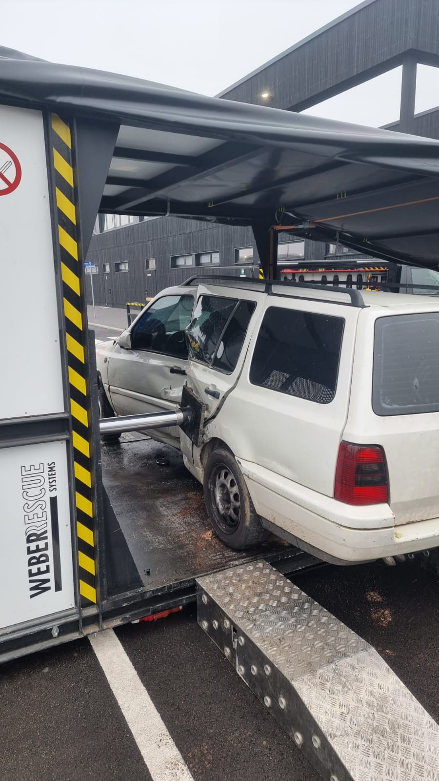 Die Firma WEBER RESCUE führte heute den neuen und patentierten Crash System vor. Mit dem Crash System können alle Arten von Unfällen, wie Front-, Seiten-, Dach- oder Heckunfälle, vom PKW über Transporter bis hin zur LKW-Kabine simuliert werden. Eine praxisgerechte Ausbildung anhand von Unfallszenarien, wie sie täglich auf den Straßen passieren, ist damit möglich. Es ist außerdem ideal für Vorführungen und Schulungen zur Öffentlichkeitsarbeit geeignet. Das Crash System von WEBER RESCUE ist ein einfach bedienbares System zur sicheren und unfallfreien Deformierung ohne Eigengefährdung der Einsatzkräfte.
